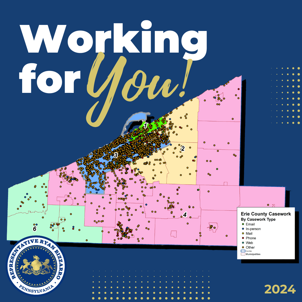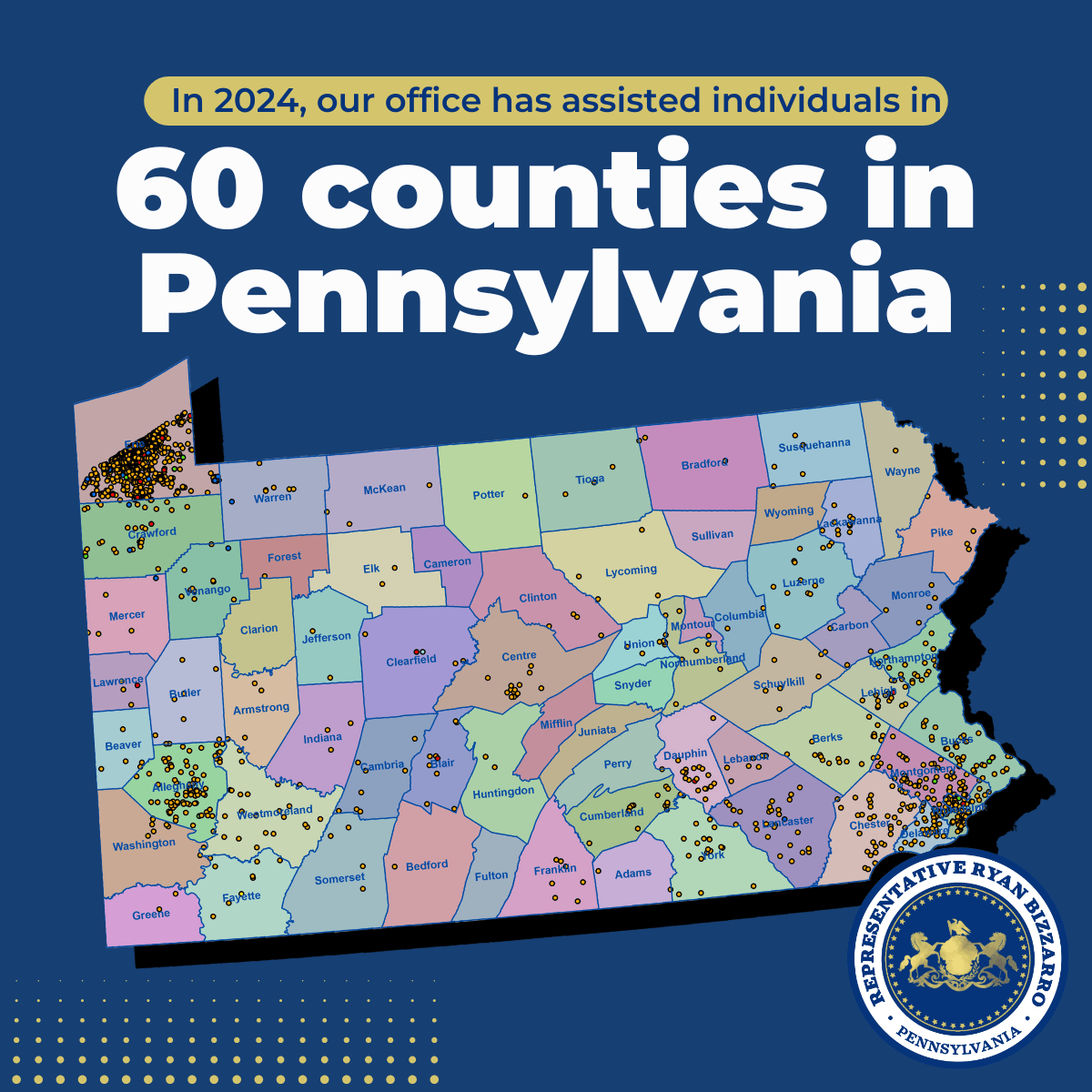 When people have a need, we don't turn them away. People across the state often reach out to us when they can't find the service they need in their district. Once again, my team and I helped people in the majority of PA's 67 counties, and we expect to do the same in 2025.