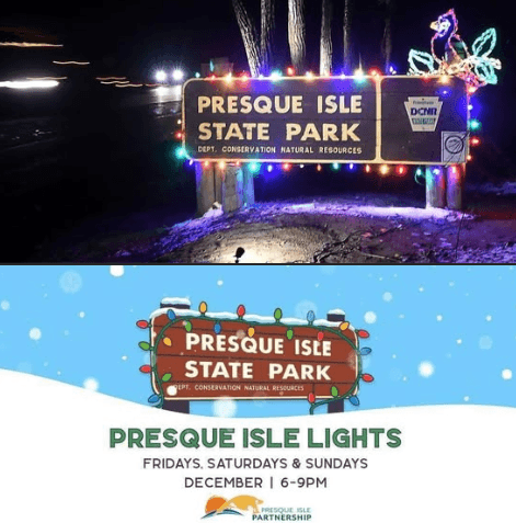 Presque Isle Lights is back from Dec. 5 through Dec. 28! Take a drive— Fridays, Saturdays, and Sundays — through Presque Isle State Park and enjoy the festive displays.