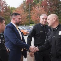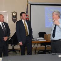 Rep. Ryan Bizzarro presents a check to the Millcreek Township Police Department for $312,000 to help the township pay for an armored vehicle, allowing the men and women of law enforcement to remain safe while they keep the community safe.