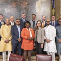Rep. Ryan Bizzarro, along with his Erie County colleagues and House Democratic whip Jordan Harris, welcome members of the Jefferson City Leadership Academy to the state Capitol for a tour and discussion.