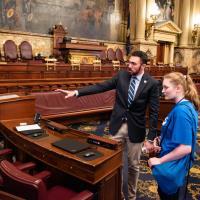 Rep. Ryan Bizzarro again welcomes members of the 2024 Jefferson Civic Leadership Academy to Harrisburg for a second day of discussions.