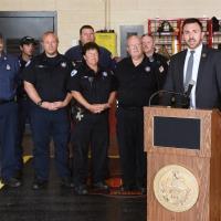 State Rep. Ryan A. Bizzarro hosted a news conference at West Lake Fire Department on June 4, 2015, calling for the exemption of emergency responders in paying for state and federal background check clearances.