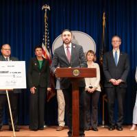 Rep. Ryan Bizzarro joins PA Treasurer Stacy Garrity to announce the first round of "Money Match" where nearly 8,000 people will receive checks totaling more than $1.7 million in unclaimed property.