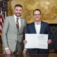 Governor Josh Shapiro signs Rep. Ryan Bizzarro's anti-SLAPP legislation into law, helping to end frivolous lawsuits and preserve freedom of speech.