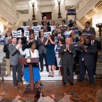 Rep. Ryan Bizzarro joins colleagues at a Harrisburg news conference where a package of bills to ensure that Pennsylvanians maintain access to essential healthcare under the Patient Protection and Affordable Care Act was discussed.
