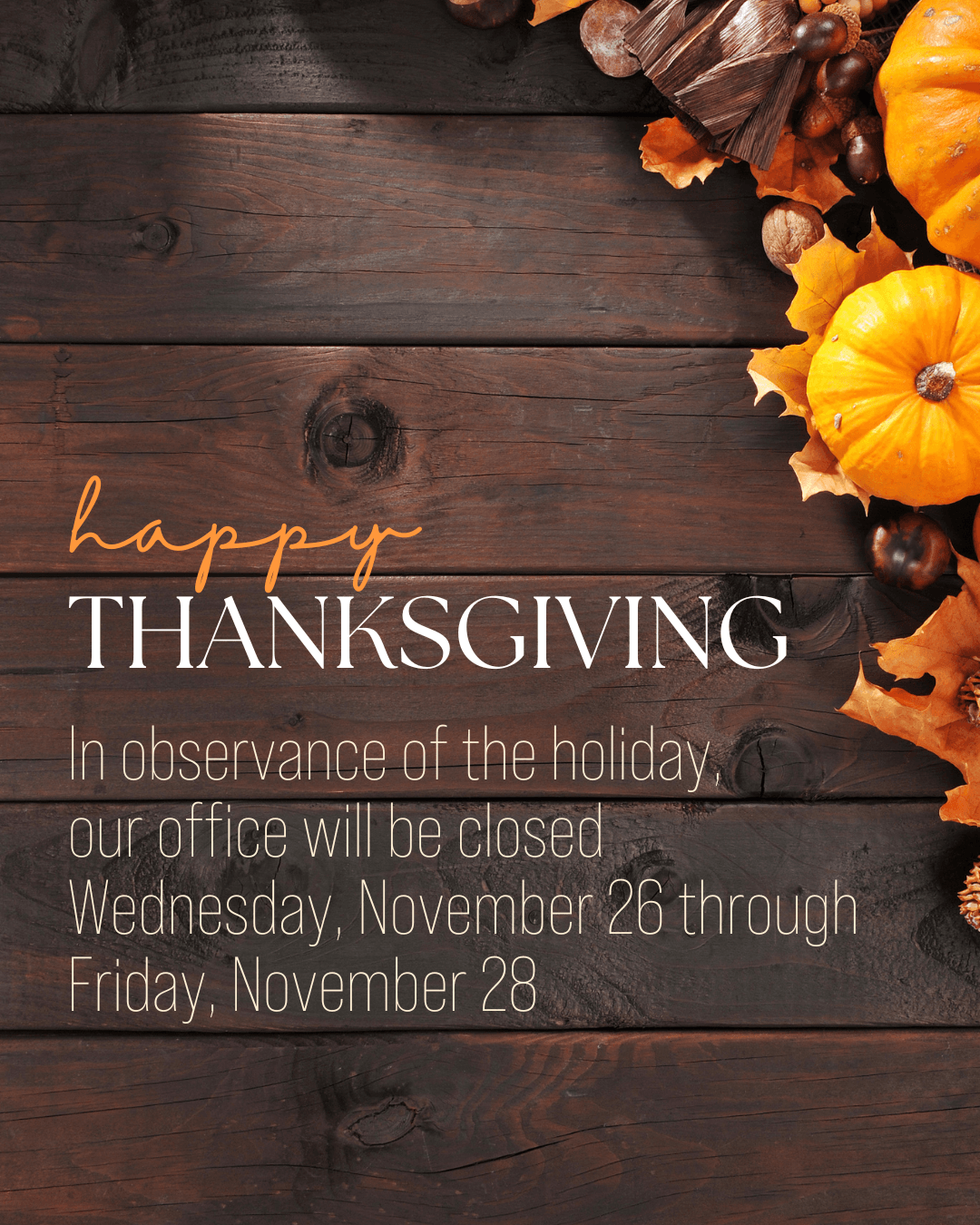 In celebration of Thanksgiving, my district office will be closed from Wednesday, November 26, through Friday, November 29. We will reopen on Monday morning for our regular business hours.