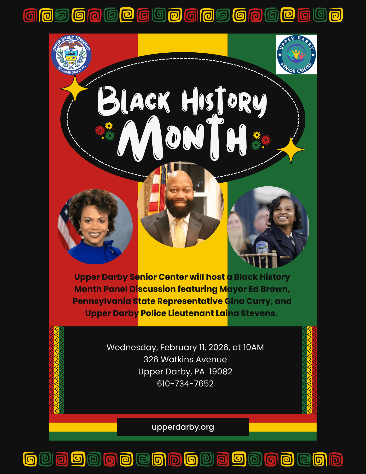 This month, the Upper Darby Senior Center will host their first-ever Black History Month Panel, and I’m excited to be there as a panelist together with Mayor Ed Brown and UD Police Lieutenant Laina Stevens!