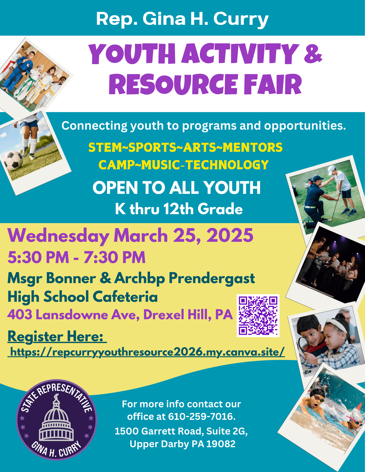 This is a great chance to check out many youth programs at all once. My team will also be there to answer questions and explain state-sponsored programs and resources for youth!