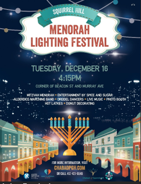 Chabad of Squirrel Hill is hosting a community Chanukah celebration. The event will include live music, food and drink, donut decorating, and more.