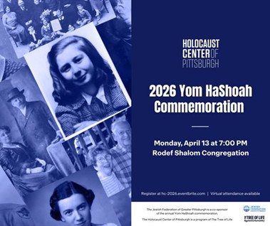 The Holocaust Center of Pittsburgh will hold its annual community-wide observance of Yom HaShoah, honoring the six million Jewish victims of the Holocaust. The program will include music, poetry, survivor testimony, and a traditional candle-lighting ceremony.