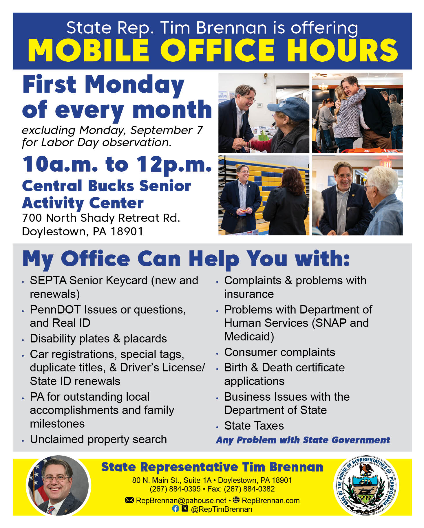 If you’re interested in this or the Scholarship program above, you’re welcome to call or email my office to let us know and request a letter of recommendation: (267) 884-0395 / RepBrennan@pahouse.net.