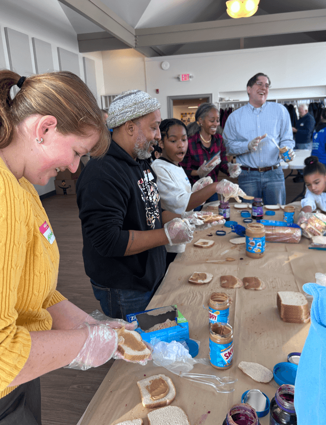Most importantly, we rolled up our sleeves and got to work — first, preparing utensil packs for Trenton Area Soup Kitchen alongside our friends from the Human Relations Campaign – Bucks County chapter, and then helping to make over 200 PB&J sandwiches for The Welcome Church in Philadelphia.