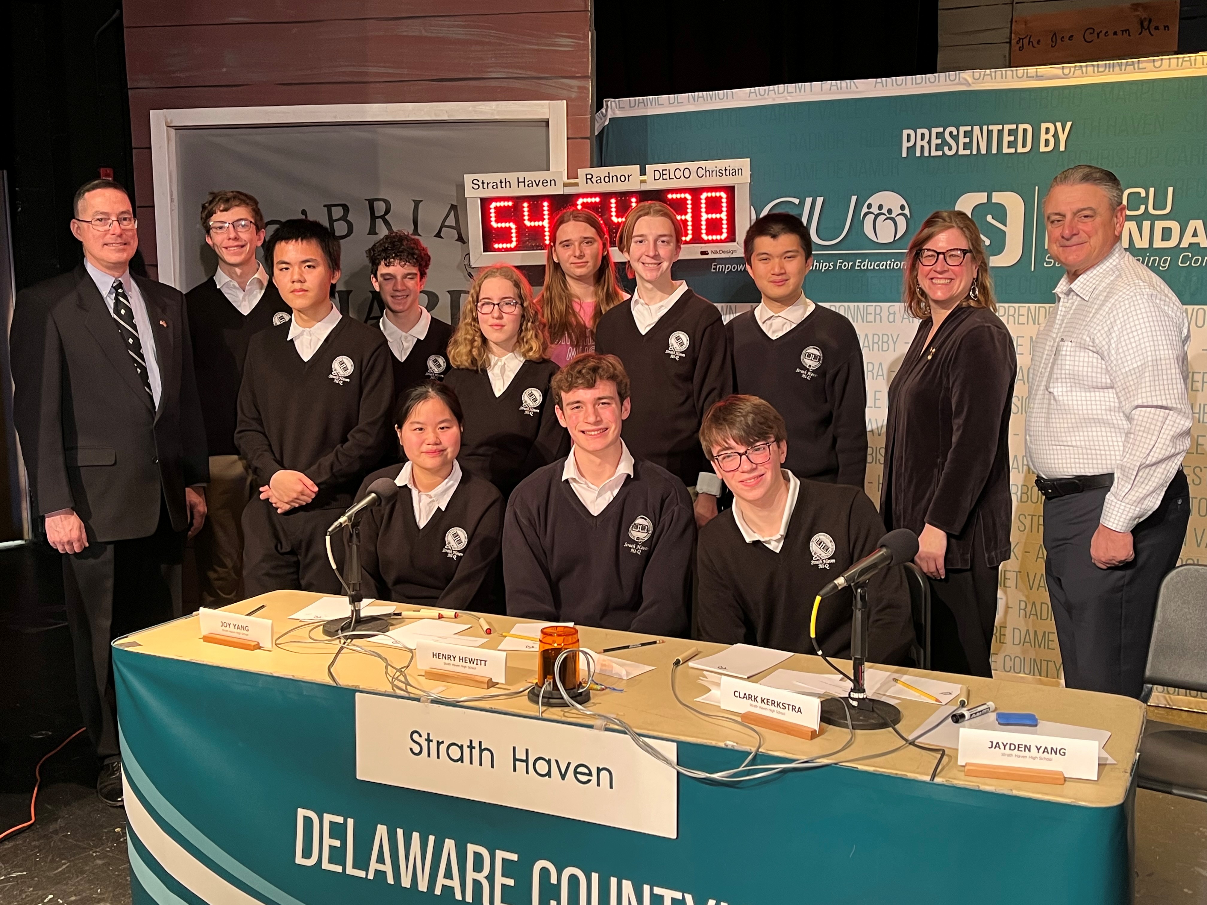 Last week I had the chance to attend the Delco Hi-Q match alongside my colleague Rep. David Delloso hosted by the Wallingford-Swarthmore School District and home team Strath Haven High School. The match also featured Radnor and Delaware County Christian School, and it was a close contest with Strath Haven and Radnor ending in a tie. I'm always so impressed by the knowledge and teamwork these students bring to every competition.