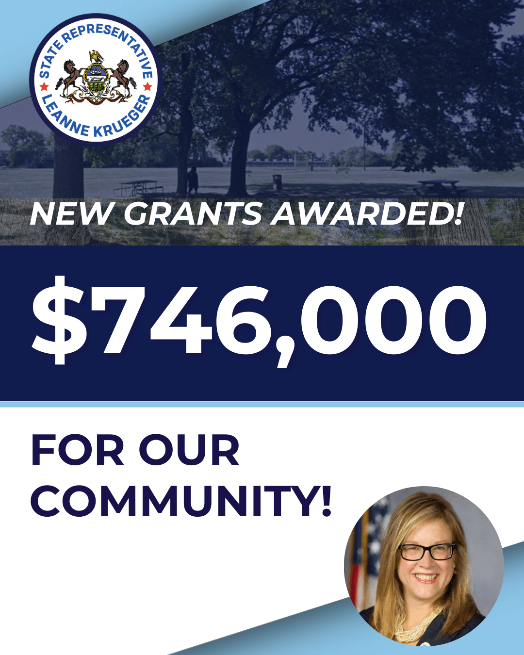 Fighting for resources for our community is one of the best parts of my job. I'm excited to share that projects in our district are receiving $746,000 in new grants through the Department of Conservation and Natural Resources’ Community Conservation Partnership Program to support recreational improvements, natural resource conservation, and community revitalization projects.