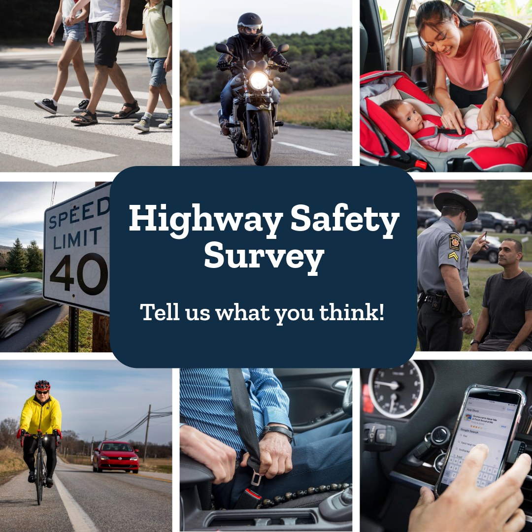 PennDOT invests nearly $30 million annually in federal grant funds statewide, partnering with educational and enforcement grantees, to deliver programming each year to help prevent crashes, fatalities, and injuries on our roadways. This survey seeks information on drivers’ behavior behind the wheel to better inform PennDOT’s program planning. This voluntary survey covers several topics including seat belt use, impaired driving, speeding, and distracted driving, as well as bicycle, pedestrian, and motorcycle safety.