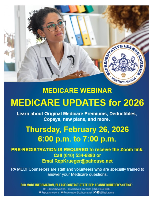 Call 610-534-6880 or email RepKrueger@pahouse.net
