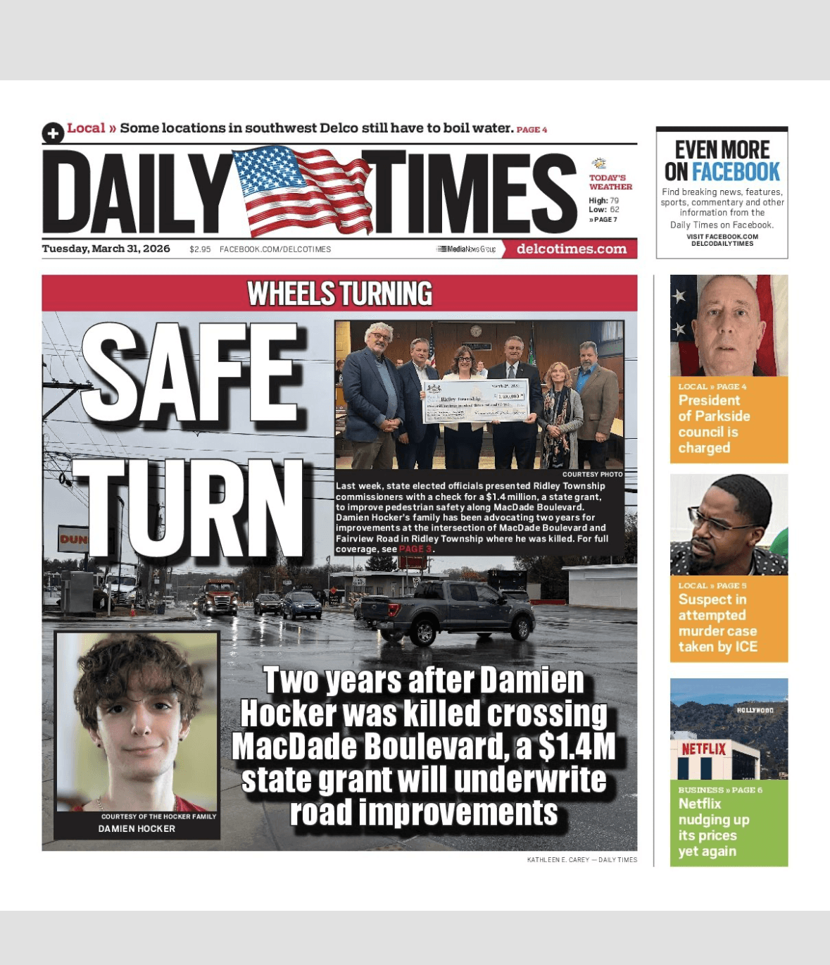 This million-dollar investment is due in no small part to the advocacy of Damien’s family. In the face of unimaginable grief, they turned their pain into purpose, working to prevent other families from experiencing similar tragedy. After Ridley Township rejected PennDOT’s initial plan for traffic-calming measures along MacDade Blvd., Damien’s family continued to advocate for change and PennDOT engineers presented a Plan B that Ridley Township agreed to and those are the changes that will be funded by this grant.
