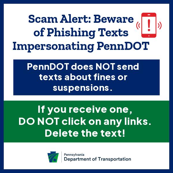 Learn more and get tips from PA State Police to protect against scams: https://www.pa.gov/agencies/penndot/news-and-media/newsroom/statewide/2026/shapiro-administration-warns-of-text-phishing-scams-aimed-at-pen.