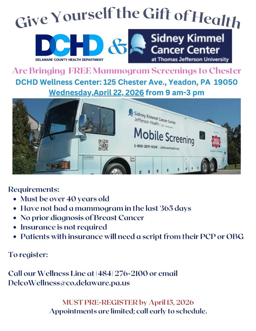 Register by calling 484-276-2100 or email DelcoWellness@co.delaware.pa.us