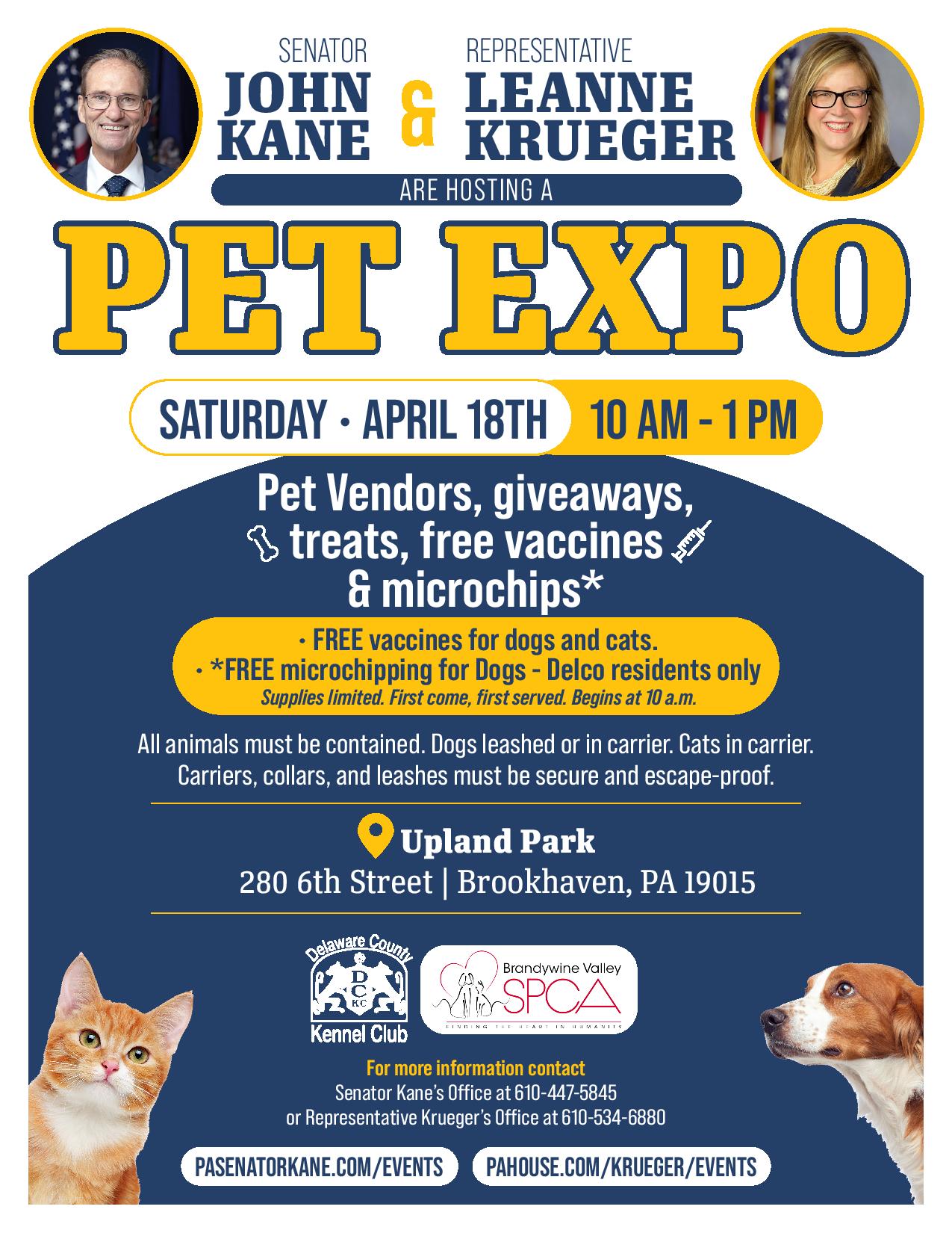 - Pet Expo with Sen. John Kane – Saturday, April 18 | 10 AM – 1 PM