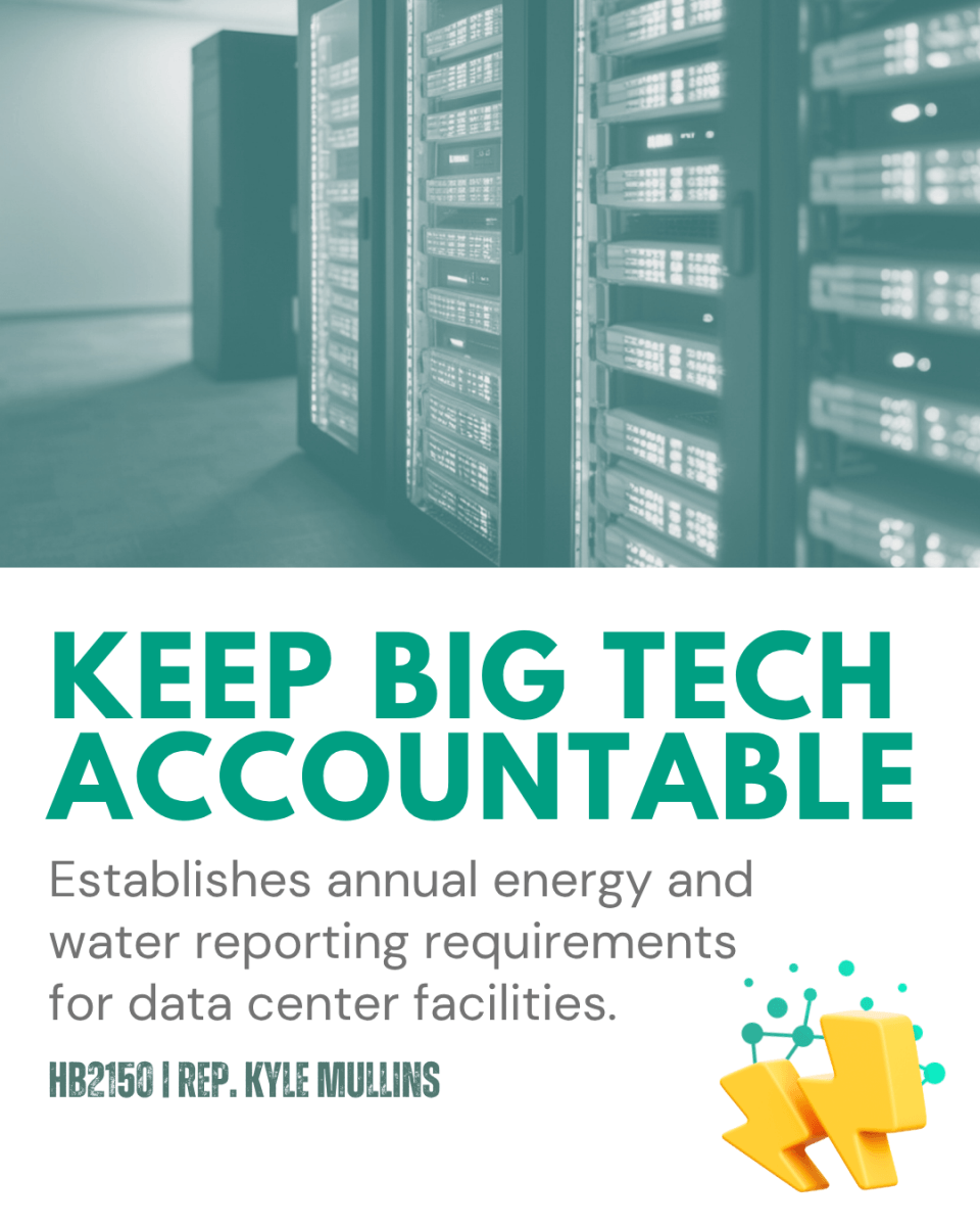 H.B. 2150 - would require data center developers to disclose key details about their operations, including energy and water usage, to the state, helping to ensure accountability for companies looking to build in our communities.