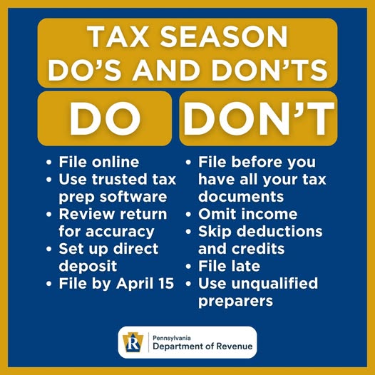 Tax season is here, and the April 15 deadline is tomorrow. For more information on how to file your PA taxes, you can visit HERE.