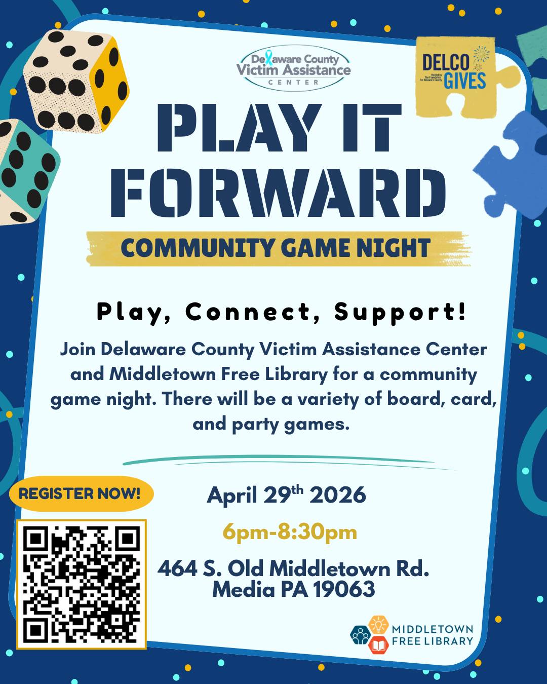 Join Delaware County Victim Assistance Center and Middletown Free Library for a community game night with board, card, and party games!
