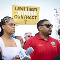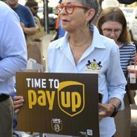 Pa. state Rep. Mary Joe Daley rallies with House Democrats in support of living wages, collective bargaining and organized labor at the UPS Phila. rally on Thursday, July 20.