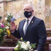Rep. Dan Miller participates in the swearing-in ceremony to begin the 2021-22 legislative session.