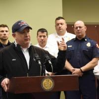 Rep. Dan Miller speaks at a press conference to discuss the need for an Urban Search and Rescue Unit based in western Pennsylvania on April 21, 2022 at the Upper St. Clair Fire Department.