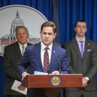 Rep. Kyle Mullins is joined by colleagues from both sides of the aisle, and advocates from the anti-bullying organization "Be the Change" to announce bipartisan anti-bullying legislation which would make chronic bullying a crime.