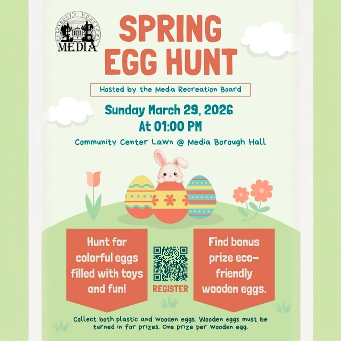 Media Borough is hosting its Spring Egg Hunt on Sunday, March 29, at 1 p.m. on the Community Center Lawn.