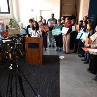 Rep. Lindsay Powell is joined by the Women & Girls Foundation of Southwestern Pennsylvania at a news conference she hosted to promote the Family Care Act, which proposes statewide paid family and medical leave insurance programs.