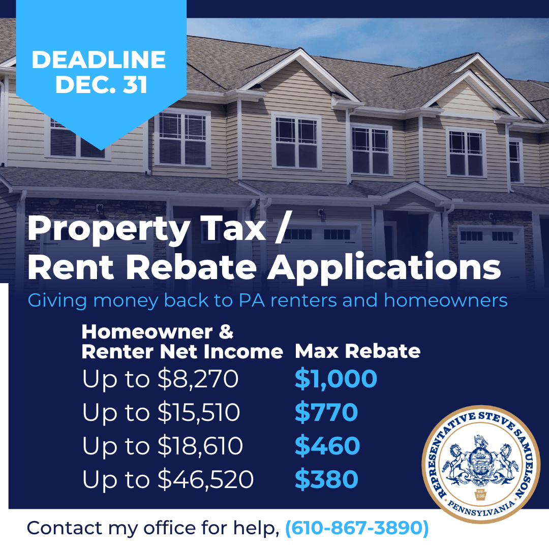 One final reminder that all eligible older Pennsylvanians and adults 18 or older with disabilities should apply for the state’s Property Tax/Rent Rebate Program by the Dec. 31 deadline.