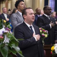 Rep. Peter Schweyer participated in a "Push-in Ceremony" at the Mack South Fire Station in Allentown, helping the city unveil three new fire trucks purchased in part with state grants that Schweyer along with Rep. Mike Schlossberg and Sen. Pat Browne helped obtain.
