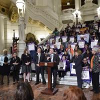 Rep. Pete Schweyer speaks at a Capitol Rally urging the passage of legislation to fund the Unemployment Call Centers that help thousands of out-of-work Pennsylvanians get the benefits and assistance they need.