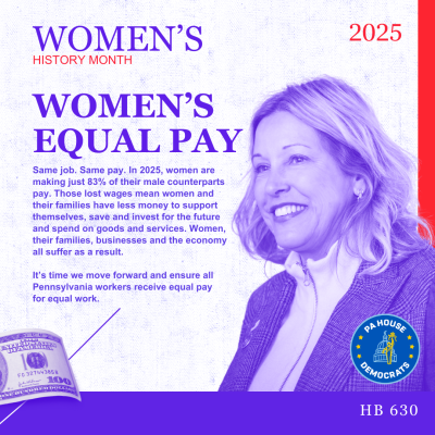 The gender pay gap remains a significant concern despite progress being made towards gender equality. This March, we honor the women who represent our communities and are committed to creating lasting change — challenging the status quo through service, legislation, and advocacy, all with the goal of forging a better tomorrow for Pennsylvania’s women.
