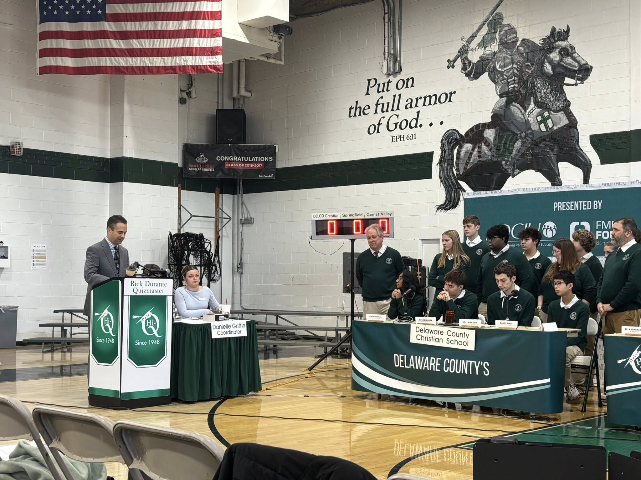 I attended a very boisterous match yesterday of the Delco Hi-Q as it came to the 168th for the first time this year at Delaware County Christian School. The home team prevailed, but it was a tight competition with the students from Springfield and Garnet Valley.