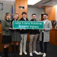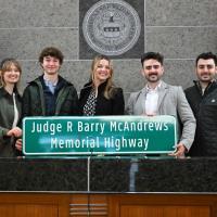 Rep. Tim Brennan joined Rep. Shelby Labs and state Sen. Steve Santasiero at a ceremony at the Bucks County Courthouse to name a portion of State Route 1006 (Ferry Road) as the Judge R. Barry McAndrews Memorial Highway in honor of the judge’s distinguished judicial career and leadership within Bucks County’s justice system.