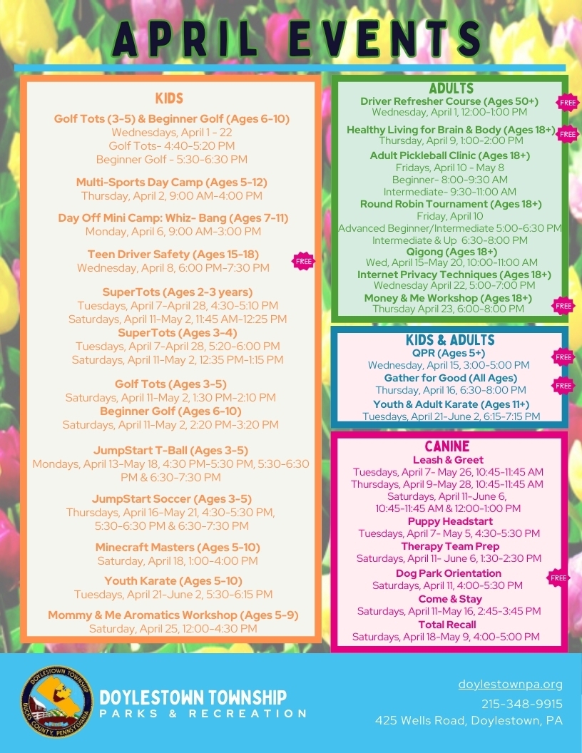 Doylestown Twp. Parks & Rec: April events schedule