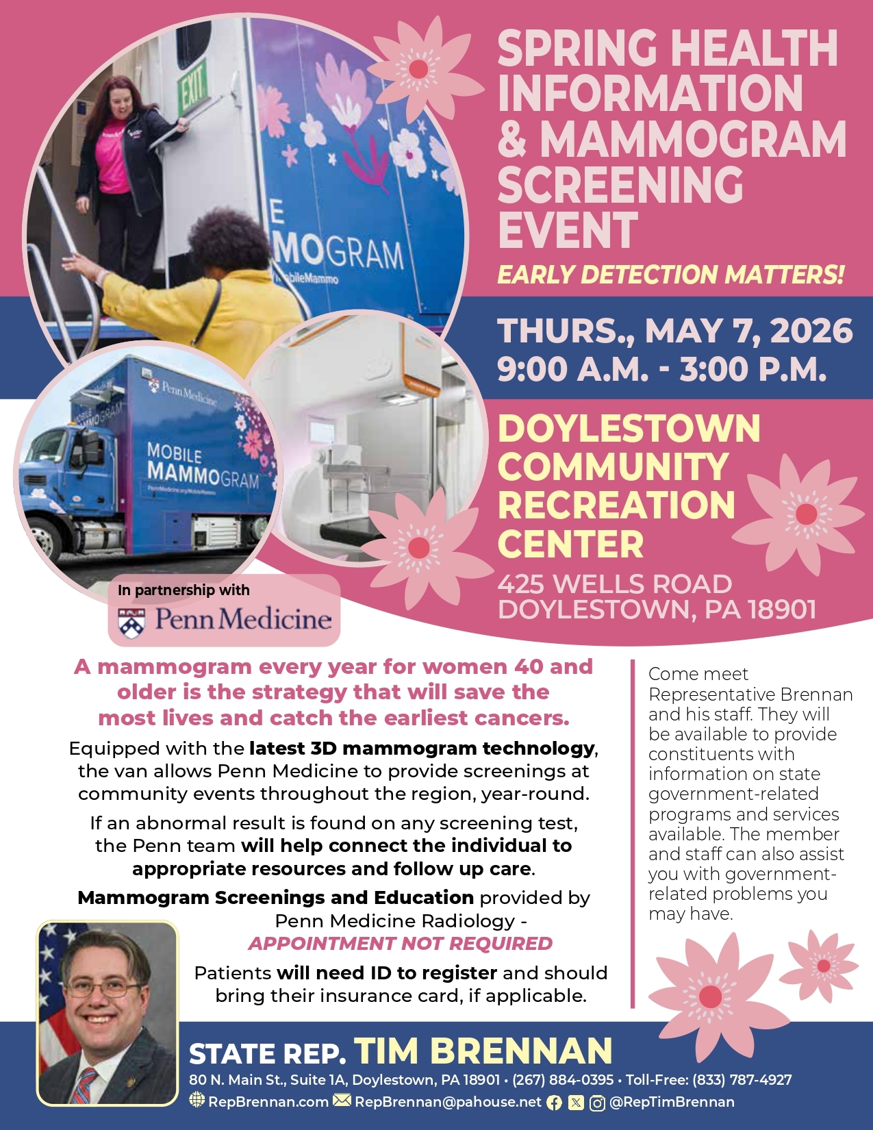 Also on the calendar is a Scam Jam on May 21st, hosted by Sen. Steve Santarsiero and Rep. Pery Warren in partnership with the PA Department of Banking. The event can help teach you to protect yourself from scams and identity theft. Click here for more information on the event.