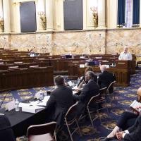 Democratic members of the House Appropriations Committee attend the first day of Budget Hearings with the Independent Fiscal Office and the Department of Aging.