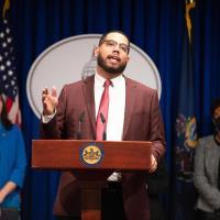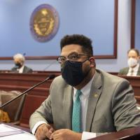 Rep. Manuel Guzman participates in the First Tuesday Ceremony and is sworn in as the state representative from the 127th legislative district for the 2021-22 legislative session.