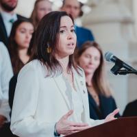 Rep. Emily Kinkead hosts a news conference with other Democratic lawmakers to introduce a powerful package of bills aimed at strengthening and growing reproductive rights and health care for the people of Pennsylvania.