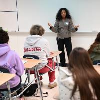 Rep. Lindsay Powell visits Shaler High School to speak to Civics Classes about the legislative process and award House Citations to essay winners who wrote about their suggestions on future legislation.