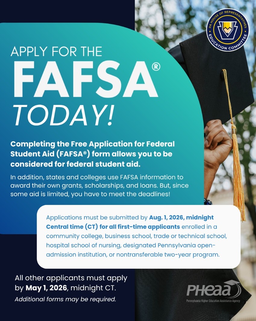 The Pennsylvania Higher Education Assistance Agency is reminding all students and families to complete the Free Application for Federal Student Aid (FAFSA).