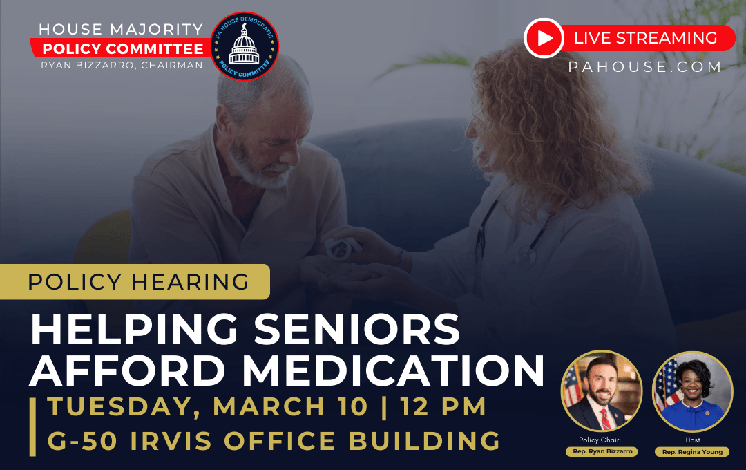 Next Tuesday, March 10, I’m hosting a public hearing at noon with the House Majority Policy Committee to learn more about how we can help seniors afford medication. Too many seniors have to decide whether to put food on the table or buy their medication and that it wrong. I have legislation that would raise the income limits for the PACENET program that would allow thousands of older adults to qualify without having much of an impact on the program itself. I’m working to ensure that our most vulnerable neighbors and loved ones are ensured access to life-saving medication without breaking the bank. The hearing in Harrisburg, but you can watch the livestream or the recording on YouTube.